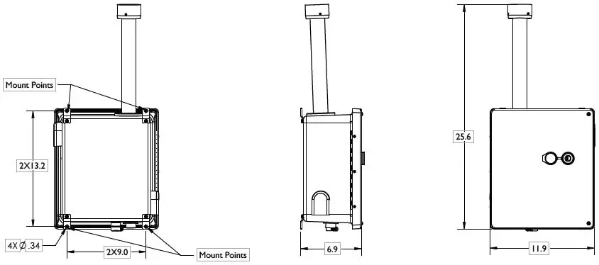 | Dimensions (L x W x H) | 10.6” x6.01” x 12.14” (26.9 cm x 15.2 cm x 30.8356 cm) includes barb fittings |