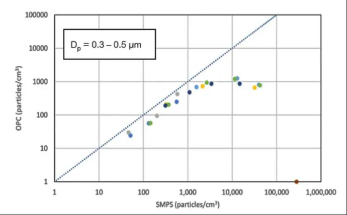 | Aerosol Concentration Range | 0.01 to 47,000 µg/m³ (2500 particles /cm³, 70,000,000 particles/ft³) |