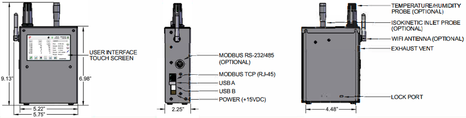 Optional Accessories Printed manual, temperature relative humidity sensor, isokinetic probes, purge filter, data cable, mounting bracket and sample tubing