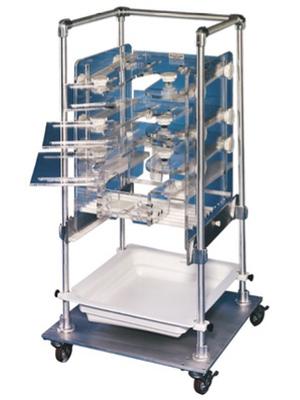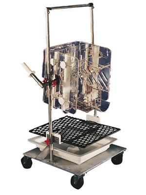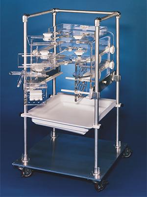 Rolling support carts enable the researcher to chair the animal in the housing area and safely move it to the lab.